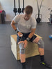 Use Novaa Knee Ultra for 20 minutes post-thrusters to reduce joint strain; stretch quads and hip flexors.